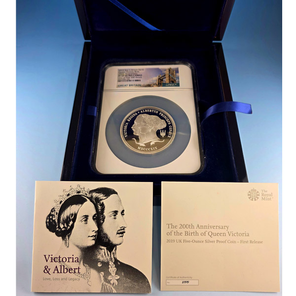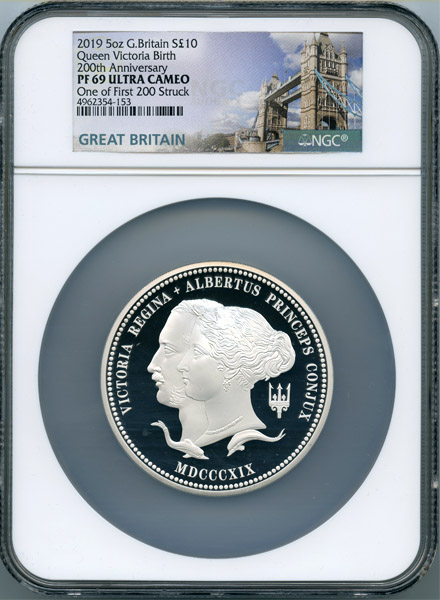 イギリス ヴィクトリア生誕200周年記念 2019年 10ポンド(5オンス) 銀貨 NGC PF69UCAM