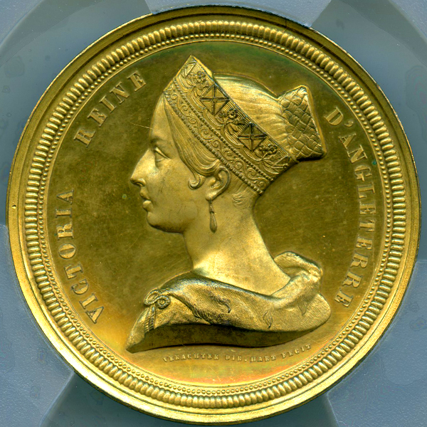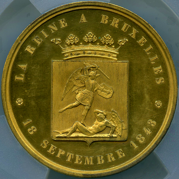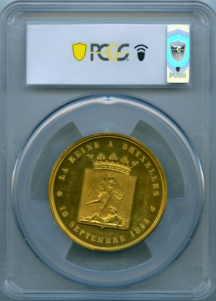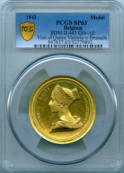 ベルギー ヴィクトリア女王ブリュッセル訪問記念 1843年 ギルトブロンズメダル PCGS SP63