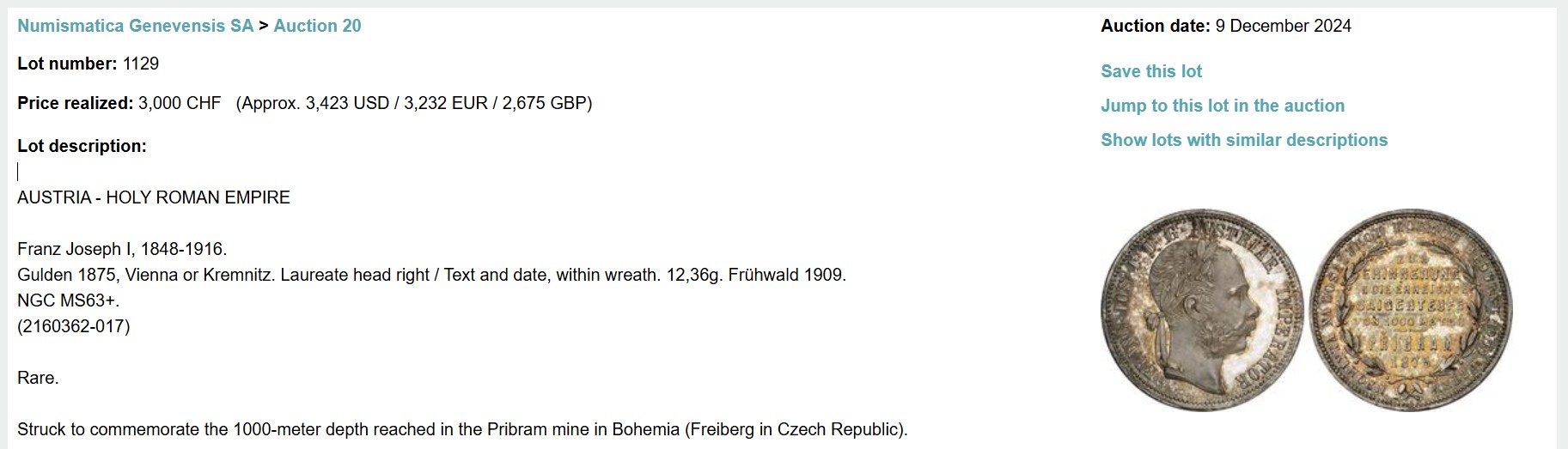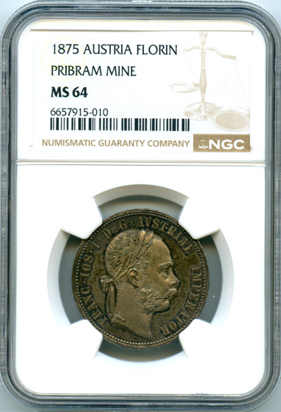 オーストリア プリブラム鉱山1000m記念 1875年 フローリン 銀貨 NGC MS64