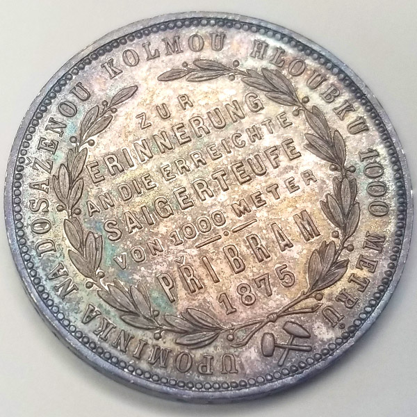 プリブラム鉱山の垂直深度1000メートル到達を記念して発行された銀貨です。