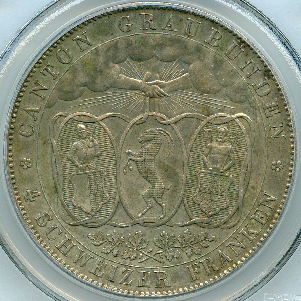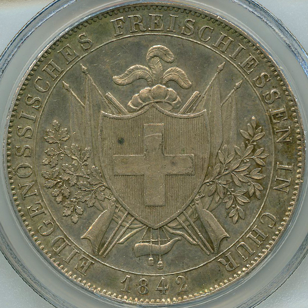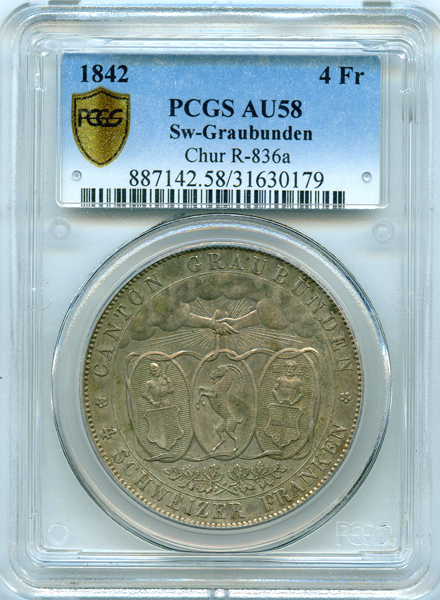 スイス グラウビュンデン 射撃祭 1842年 4フランケン 銀貨 PCGS AU58