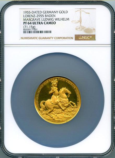 ドイツ バーデン ルートヴィヒ・ヴィルヘルム生誕300周年記念 1955年 金メダル NGC PF64UCAM