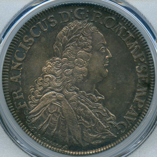 オモテ面は、神聖ローマ帝国の皇帝フランツ1世、ウラ面にはレーゲンスブルクの都市景観が描かれています。