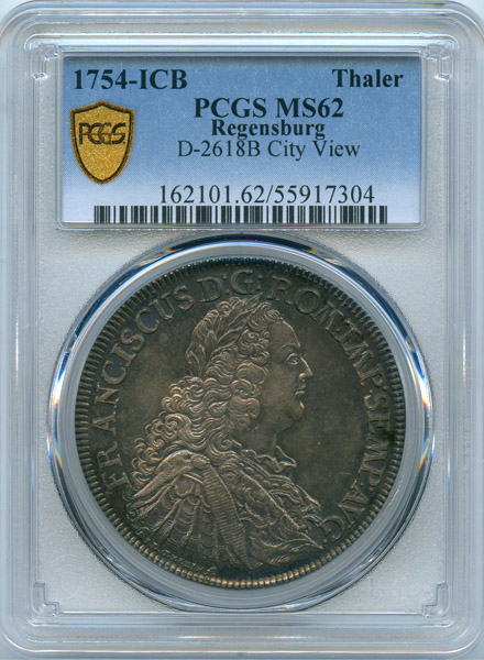 ドイツ レーゲンスブルク 都市景観 1754ICB ターラー 銀貨 PCGS MS62