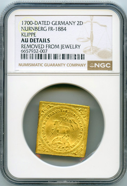 ドイツ ニュルンベルク 1700年 ラム 2ダカット クリッペ 金貨 NGC AU DETAILS
