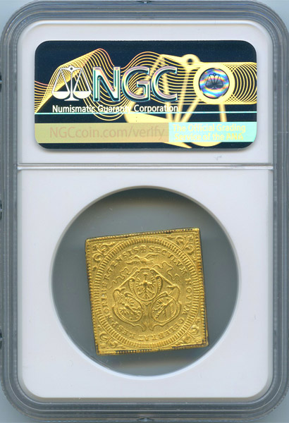 近年人気のラムダカットの中でも、大変珍しい四角いクリッペタイプの2ダカット金貨です。
