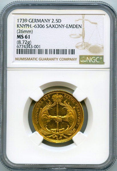 ドイツ ザクセン=エムデン 都市景観 1739年 2.5ダカット(メダル) 金貨 NGC MS61