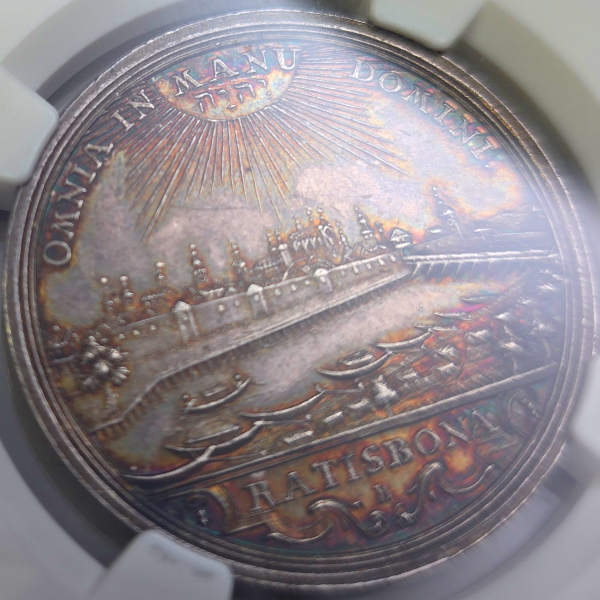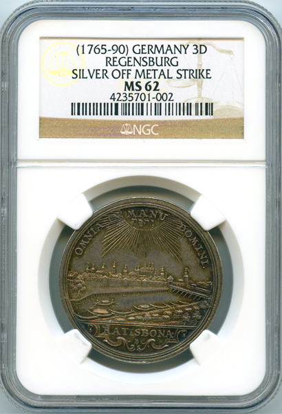 ドイツ レーゲンスブルク 都市景観 (1765-90) 3ダカット 銀打ち貨 NGC MS62