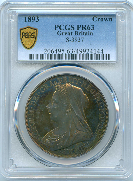 イギリス ヴィクトリア オールドヘッド 1893年 クラウン 銀貨 PCGS PR63