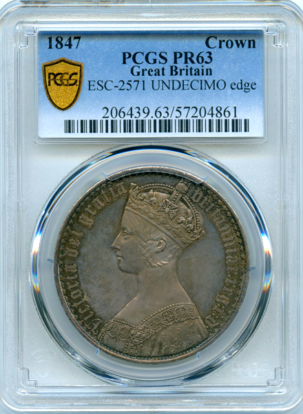 イギリス ヴィクトリア女王 ゴシッククラウン UNDECIMO 1847年 銀貨 PCGS PR63