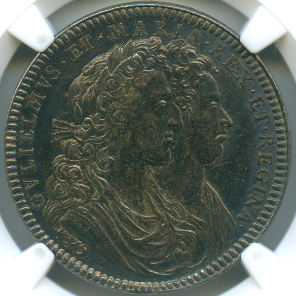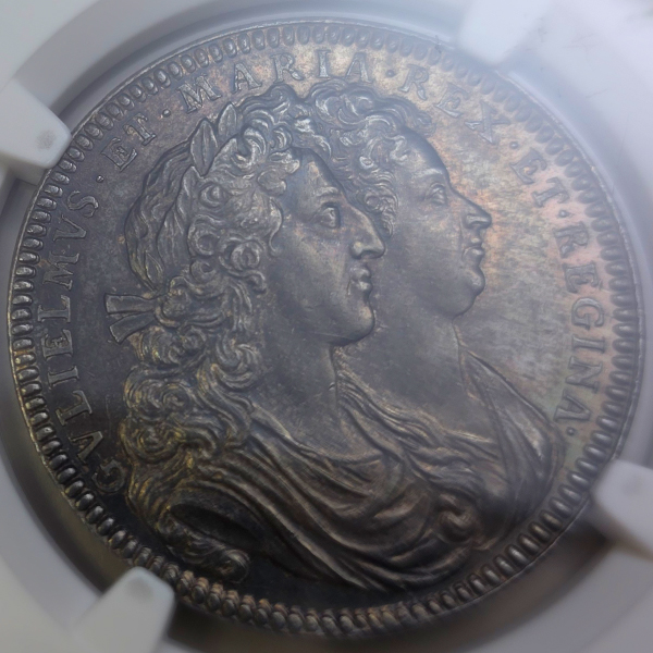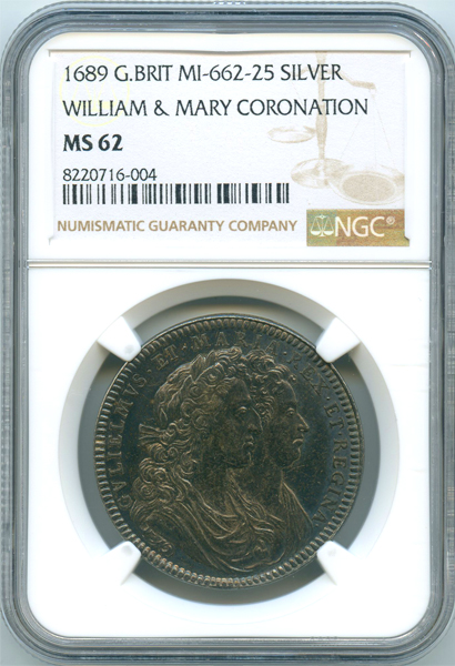 イギリス ウィリアム&メアリー戴冠記念 1689年 銀メダル NGC MS62