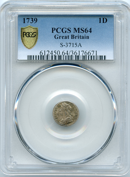 イギリス ジョージ2世 1739年 ペニー 銀貨 PCGS MS64