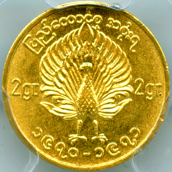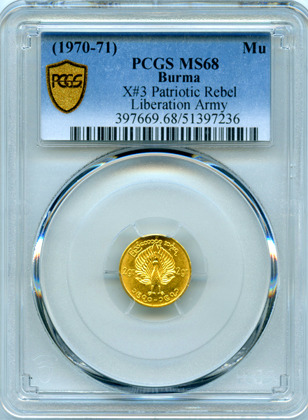 ビルマ 愛国解放軍 孔雀 (1970-71) MU 金貨 NGC MS68