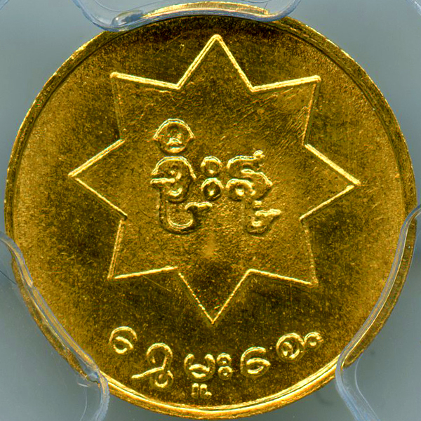 1962年から1974年までビルマで活動していた反政府組織の愛国解放軍によって発行された1ムー金貨です。