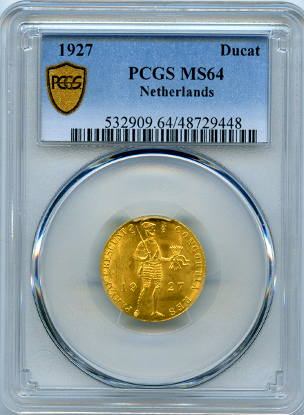 オランダ 騎士立像 1927年 ダカット 金貨 NGC MS64