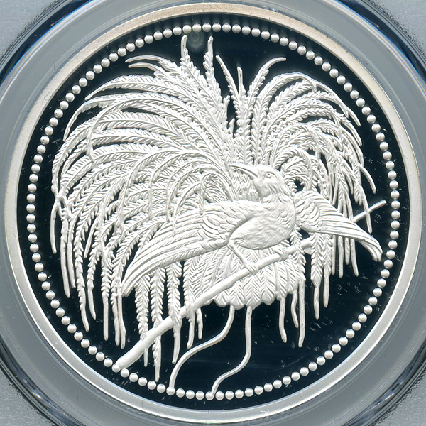 近年大変人気が高い極楽鳥のデザインを使用した、パプアニューギニアの10キナ銀貨です。