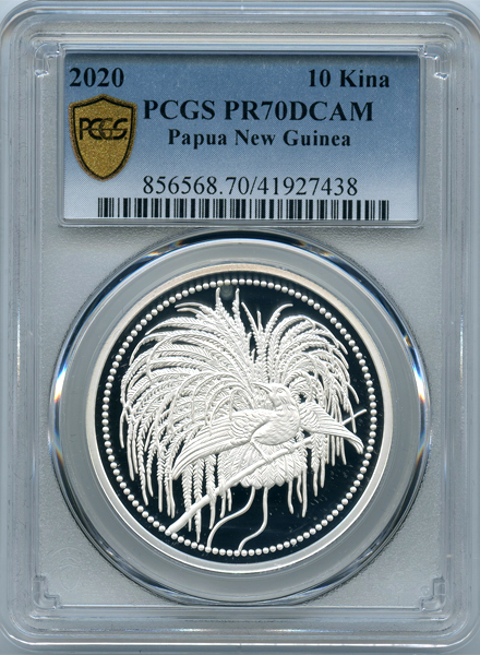 パプアニューギニア 極楽鳥 2020年 10キナ 銀貨 PCGS PR70DCAM