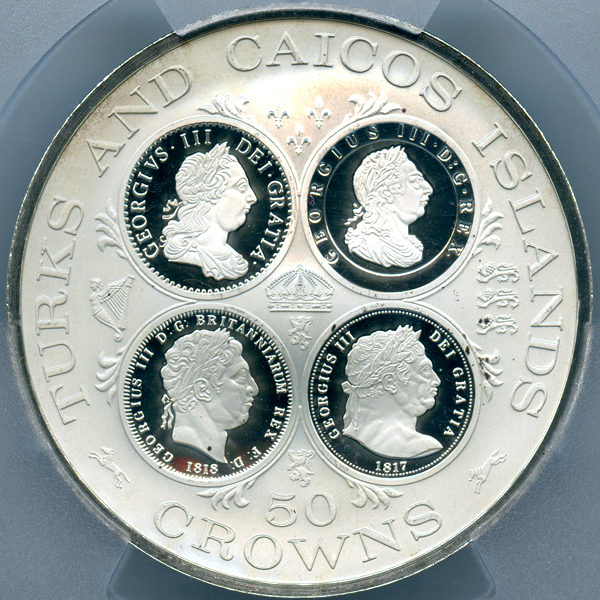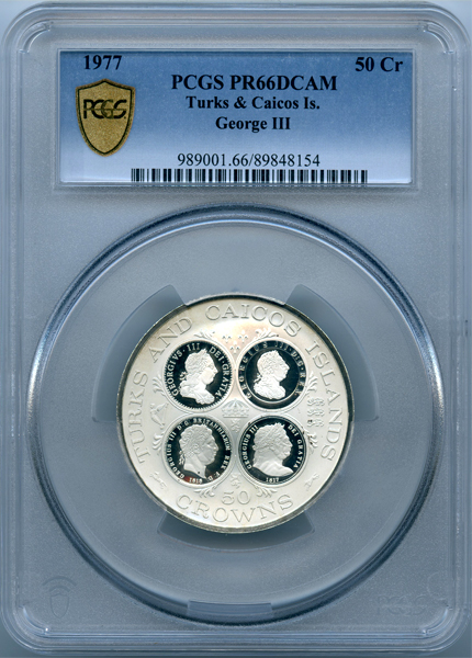 タークスカイコス ジョージ3世 1977年 50クラウン 銀貨 PCGS PR66DCAM