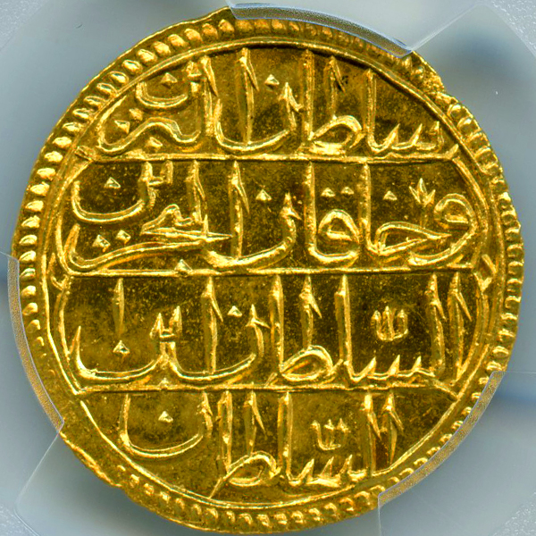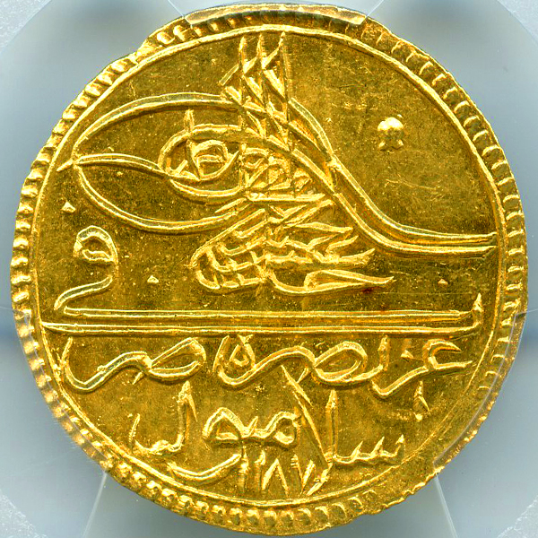 オスマン帝国 アブデュルハミト1世 AH1187//1 (1774年) Zeri Mahbub 金貨 PCGS MS65